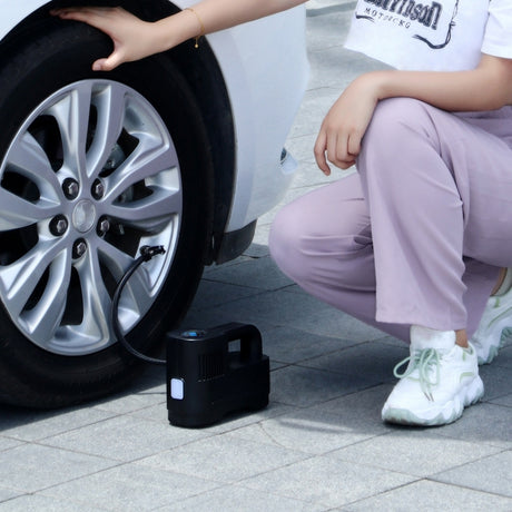 Portable Car Tire Pump - Small Automotive Inflatable Pump with Wired Pointer and Lamp