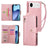 Rhombic Texture Card Bag Phone Case with Long Lanyard