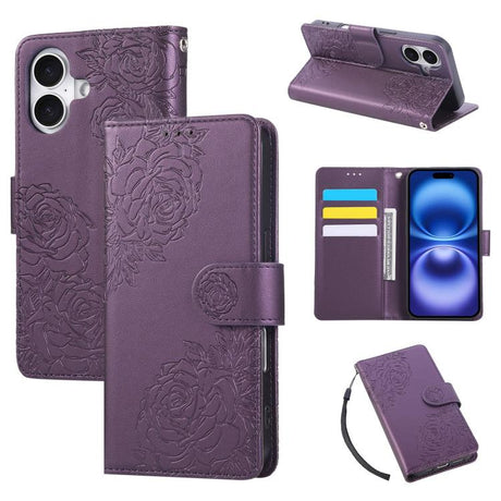 Rose Flower Embossed 3-Card Slots Leather Phone Case