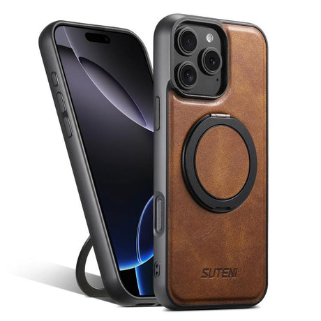 Suteni G3 Carbon Fiber Leather 360 Rotation Holder MagSafe Phone Case