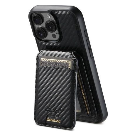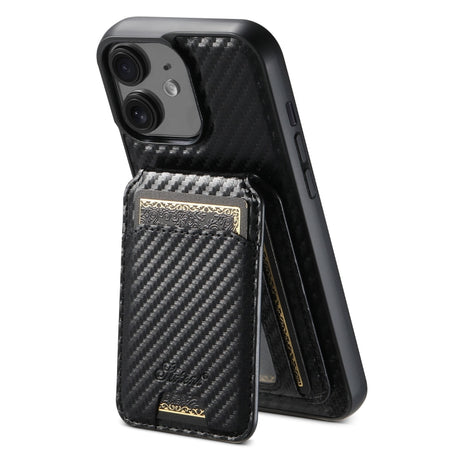 Suteni TXWH18 Carbon Fiber Texture Detachable Wallet MagSafe Phone Case