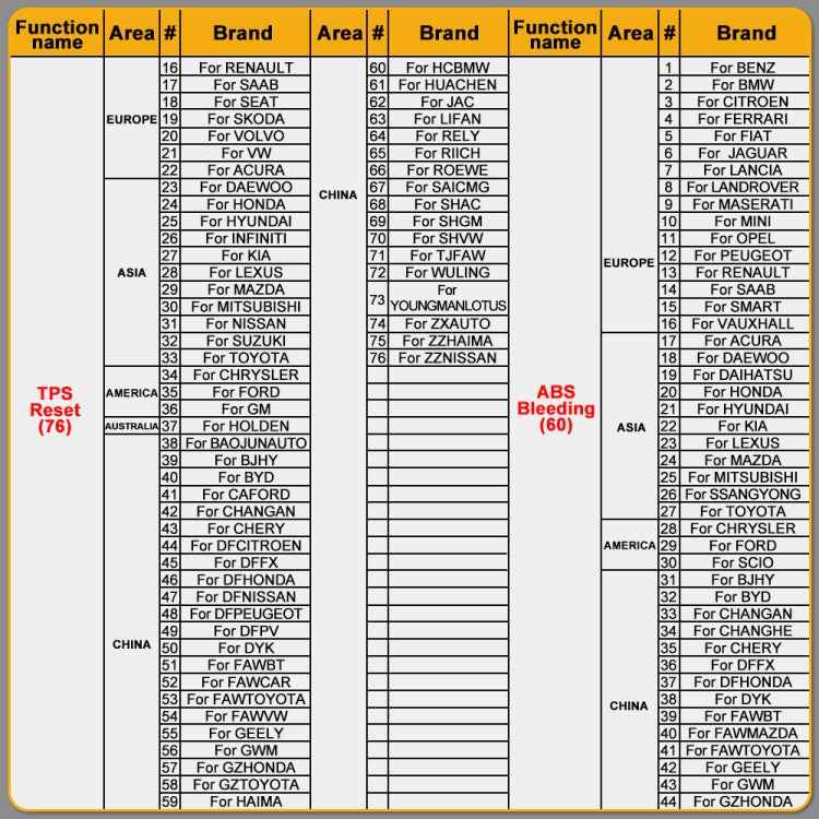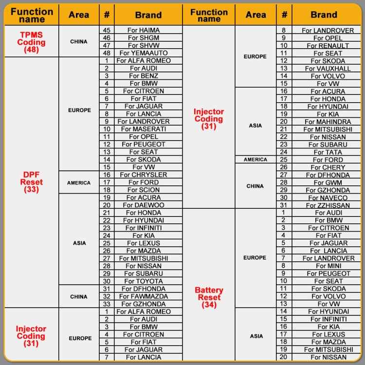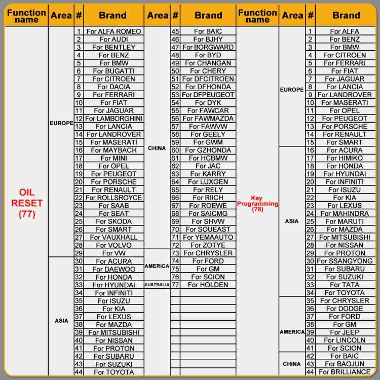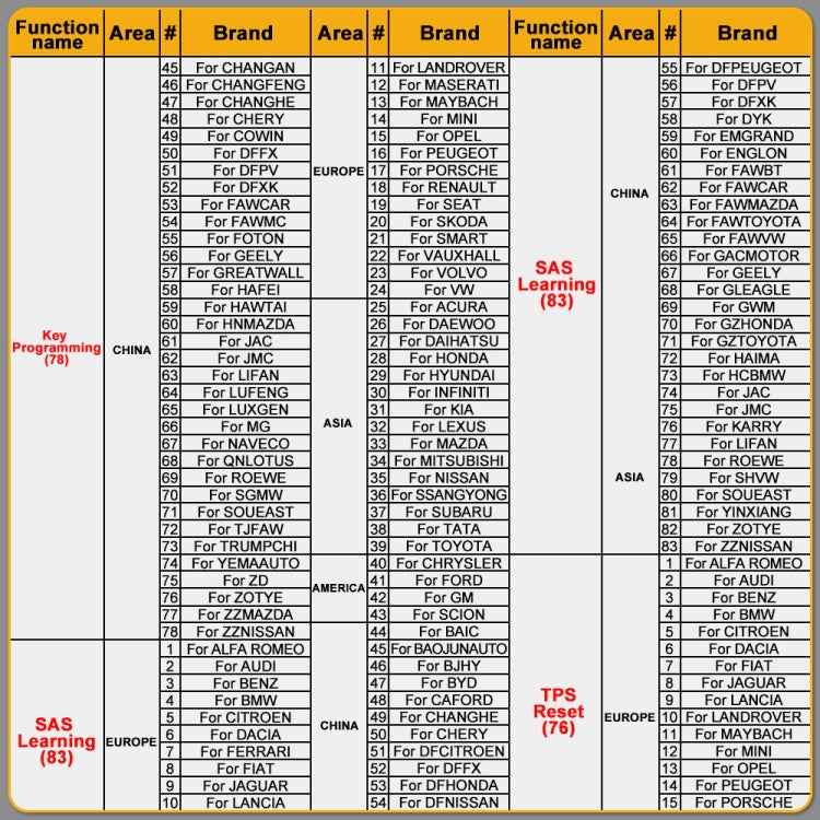 4. 100+ special functions and 17 reset and relearn service, oil reset, TPMS, ABS, SAS, TPS, DPF, EPB, battery test, injector adjust, IMMO programming, CVT learning, gear learning, sunroof initialization, suspension matching, seat calibration, headlight matching all included to meet your extra demands.