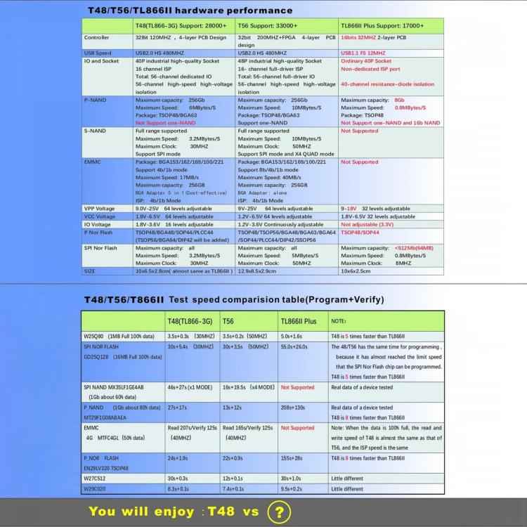 1. The latest model T48 programmer adopts 40-pin industrial-grade high-quality ZIF socket (pluggable/replaceable), which is an improvement of TL866II Plus programmer.