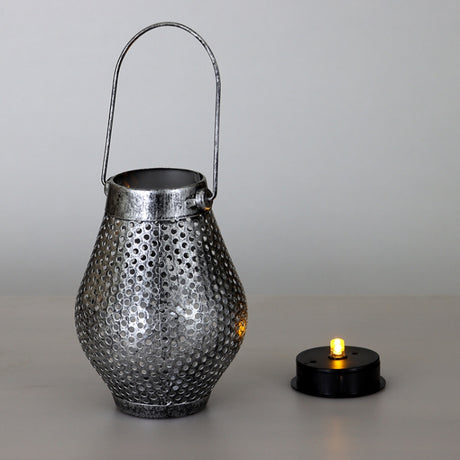 Outdoor Solar Lantern - Wrought Iron LED Portable Hollow Lantern for Courtyards
