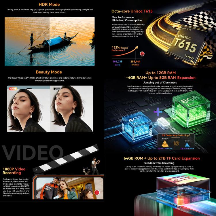 Blackview BV4800 SE Rugged Phone, 4GB+64GB, 6.56 inch Android 15 UMS9320E T615 Octa Core, Network: 4G, OTG, NFC, BV4800 SE 4GB+64GB