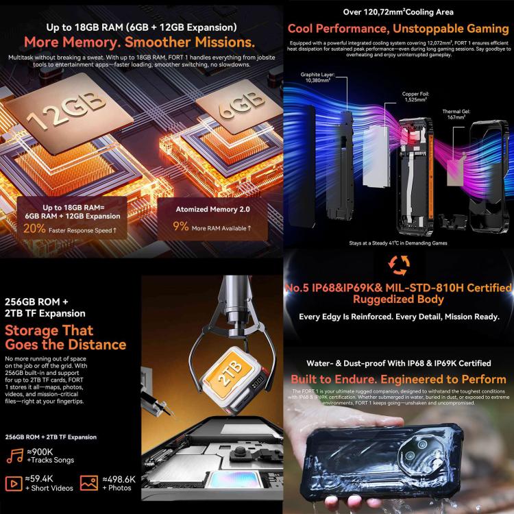 Blackview FORT 1, 6GB+256GB, 6.56 inch Android 15 Unisoc UMS9230E T615 Octa Core