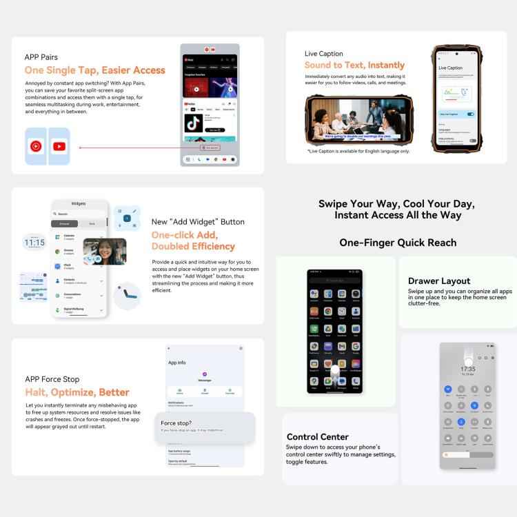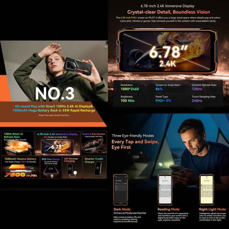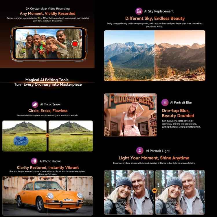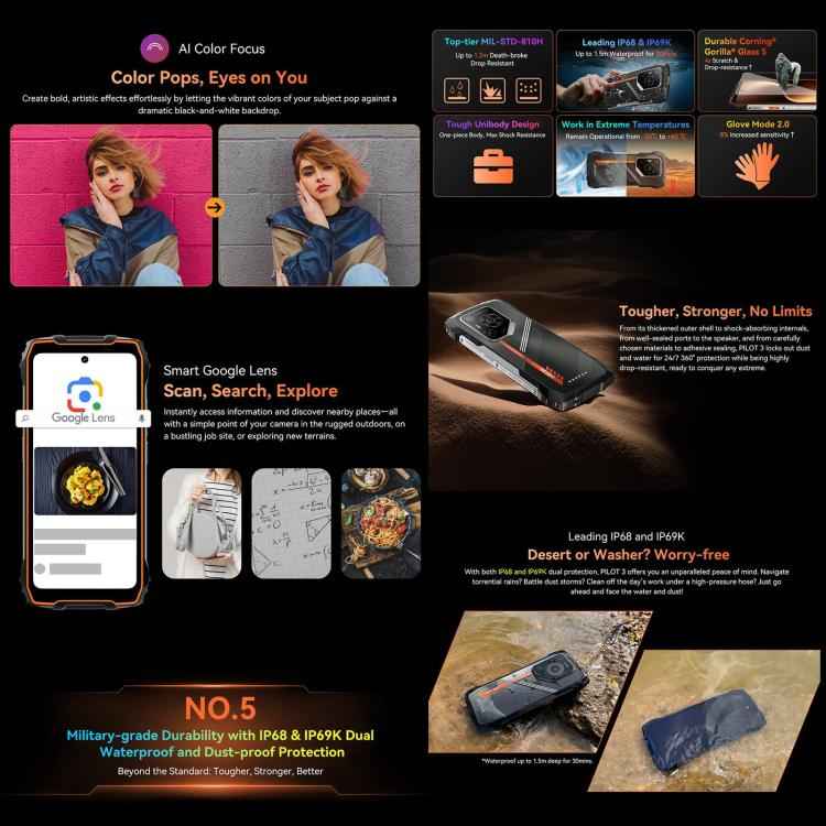 13. Protection: IP68/IP69K MIL-STD-810H Waterproof Dustproof Shockproof