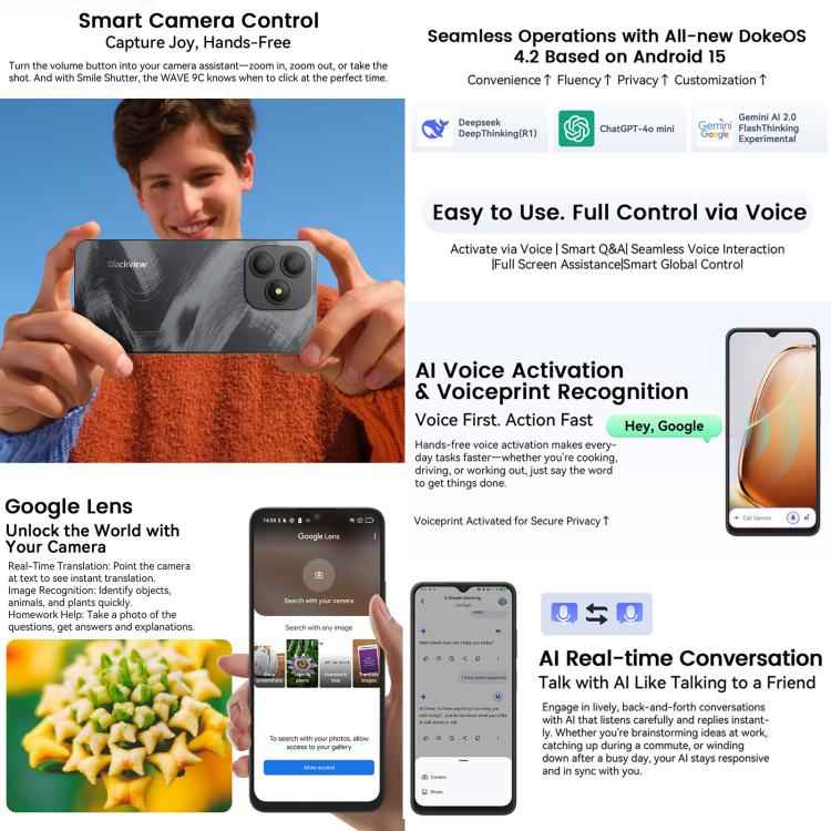 Blackview WAVE 9C, 4GB+64GB, 6.56 inch Android 15 Unisoc T603 SC9863A Octa Core
