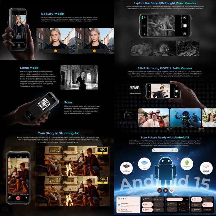 HOTWAV Hyper 8 Pro 5G, Rugged Phone, 12GB+512GB, 6.6 inch Android 15, Dimensity 7050 Octa Core