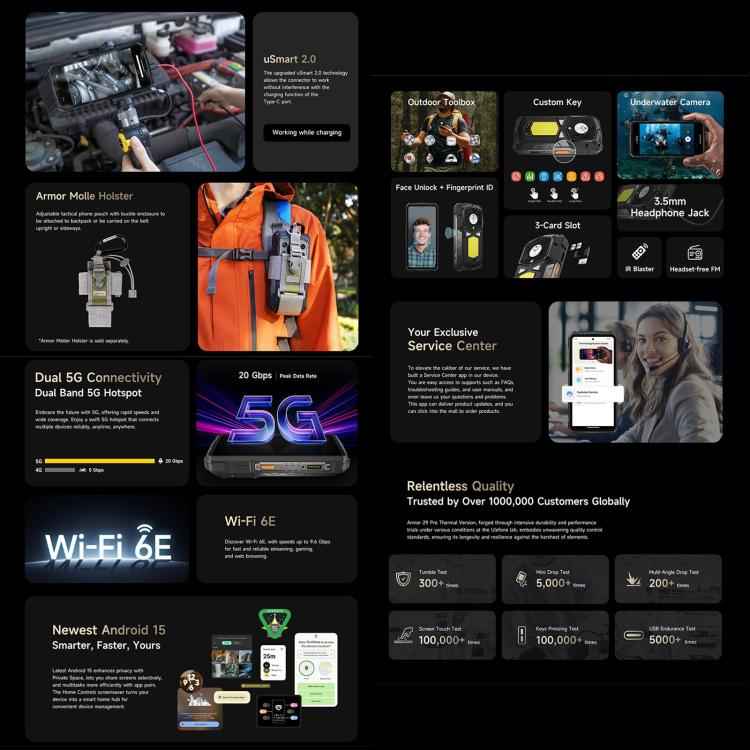 Ulefone Armor 29 Pro 5G, Thermal Version Rugged Phone, 16GB+512GB, 6.67 inch + 1.04 inch MediaTek Dimensity 7400 Octa Core,Android 15