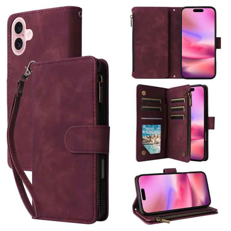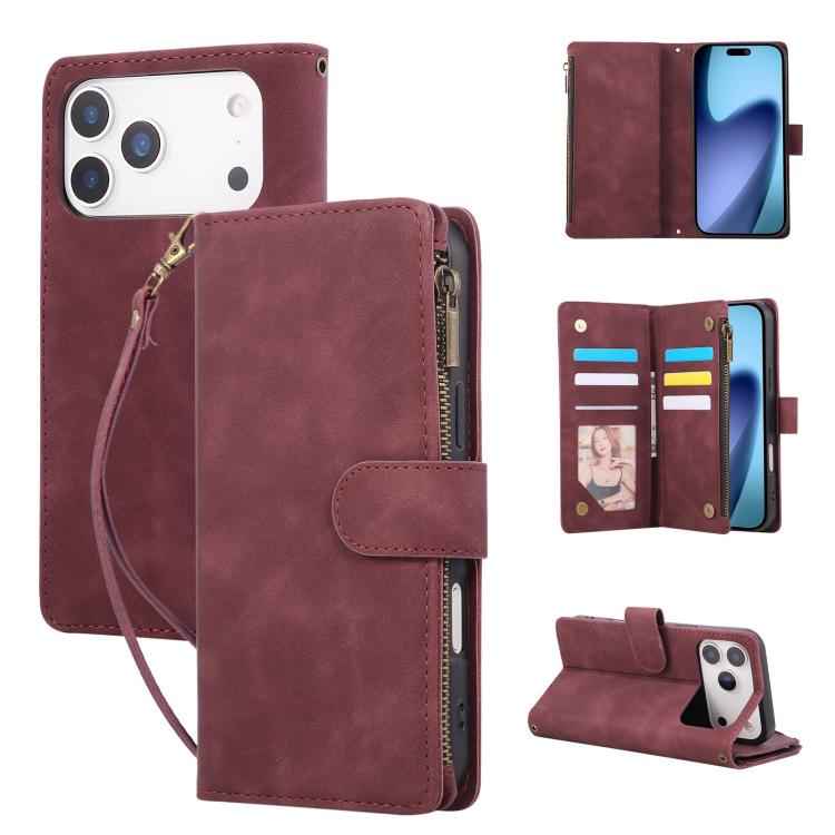 Multifunctional Multi-Card Wallet Phone Leather Case - For iPhone 17 Pro Max / Wine Red ist auf Lager und wird versandt, sobald es wieder verfügbar ist