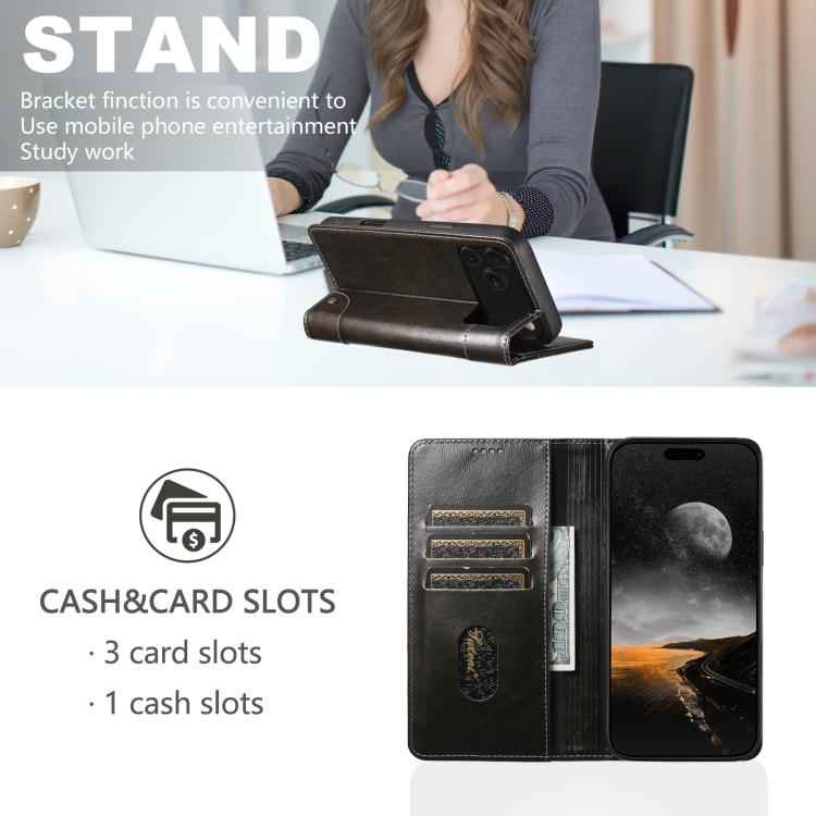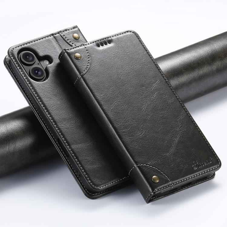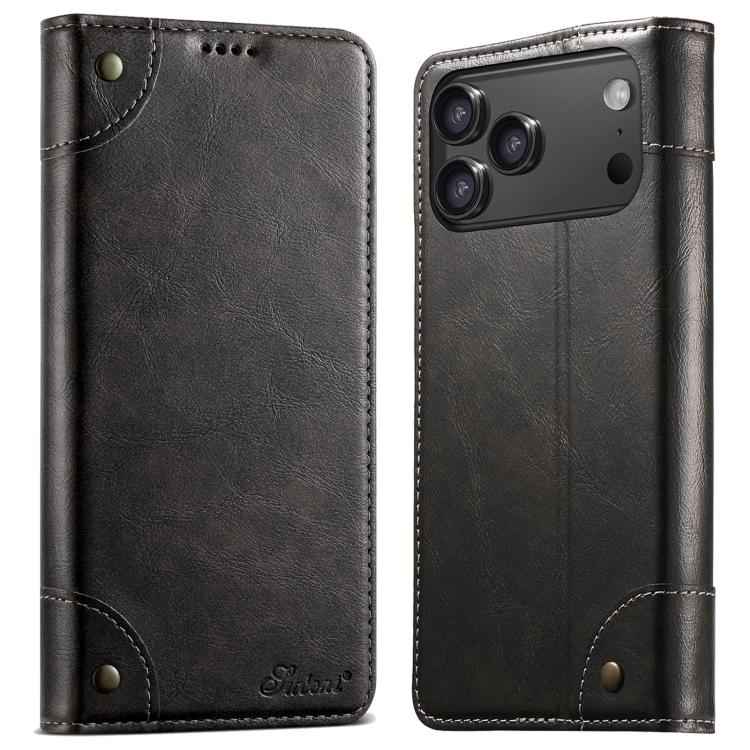 Suteni Baroque Calf Texture Buckle Wallet Leather Phone Case - For iPhone 17 Pro Max / Black ist auf Lager und wird versandt, sobald es wieder verfügbar ist
