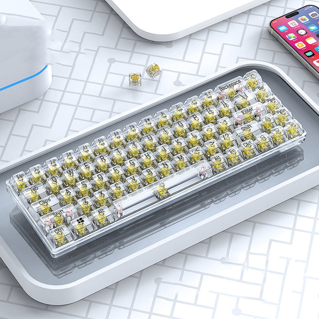 T-WOLF T40 68-Tasten RGB Mixed Light Office Gaming Transparente mechanische Tastatur