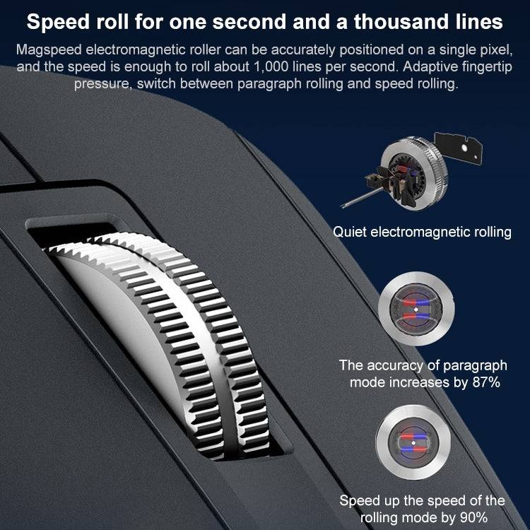3. The electromagnetic scroll wheel can be precisely positioned on a single pixel and is fast enough to scroll about 1000 lines per second. Adaptive fingertip pressure, switching between paragraph scrolling and fast scrolling modes at will.