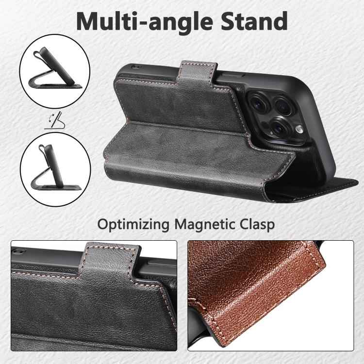 Suteni Q07 2-in-1 Multi-function Detachable Wallet MagSafe Phone Case - For iPhone 17 Pro Max / Black ist auf Lager und wird versandt, sobald es wieder verfügbar ist