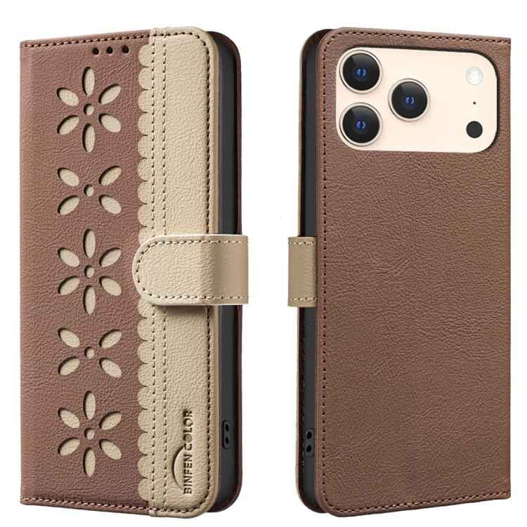 Splicing Color Hollow Flower Pattern RFID Leather Phone Case - For iPhone 17 Pro Max / Black está agotado y se enviará tan pronto como vuelva a estar disponible.
