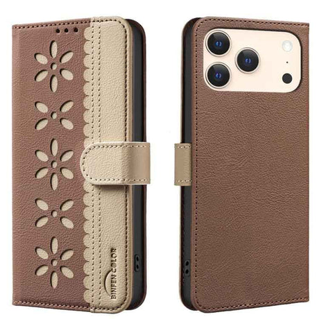 Splicing Color Hollow Flower Pattern RFID Leather Phone Case