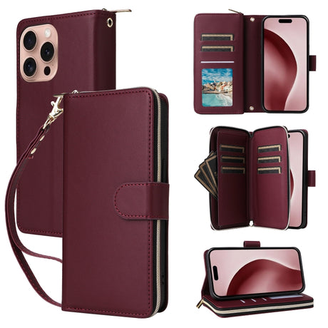 Nine-card Slots Zipper Wallet Bag Leather Phone Case