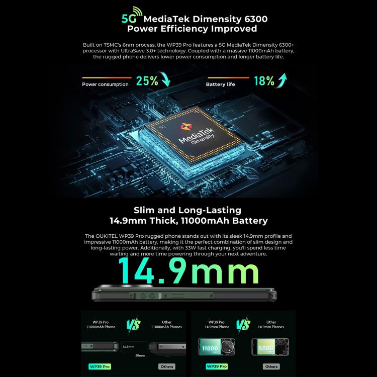 Oukitel WP39 Pro 5G Rugged Phone, 12GB+512GB, Night Vision, Fingerprint Identification, 6.6 inch Android 14 MediaTek Dimensity 6300