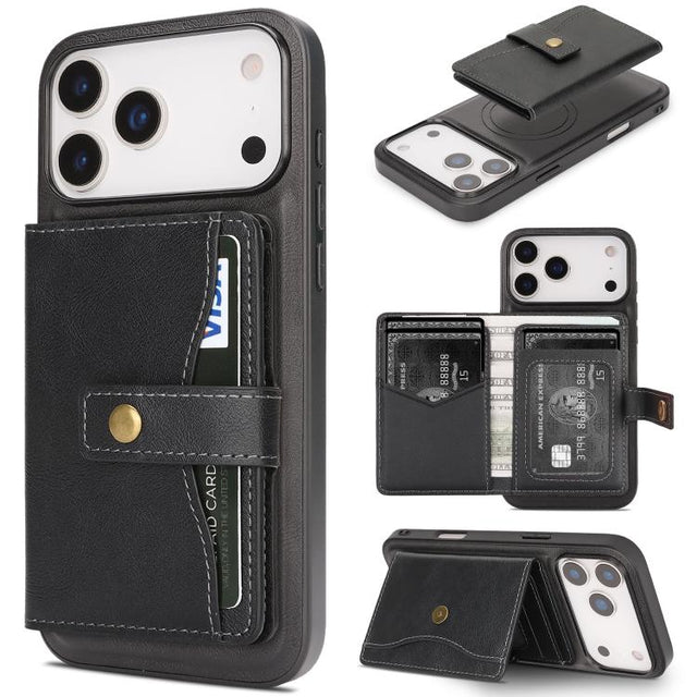 Kalebol Magnetic Button Card Bag MagSafe Ring Leather Phone Case - For iPhone 17 Pro Max / Black está agotado y se enviará tan pronto como vuelva a estar disponible.