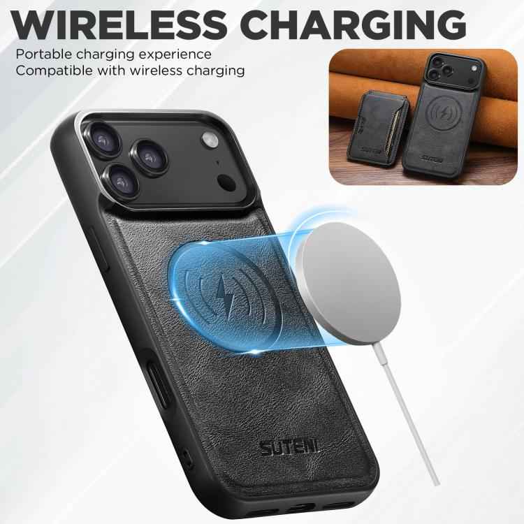 Suteni M3 Card Bag MagSafe Cowhide Texture Leather Phone Case - For iPhone 17 Pro Max / Black está agotado y se enviará tan pronto como vuelva a estar disponible.