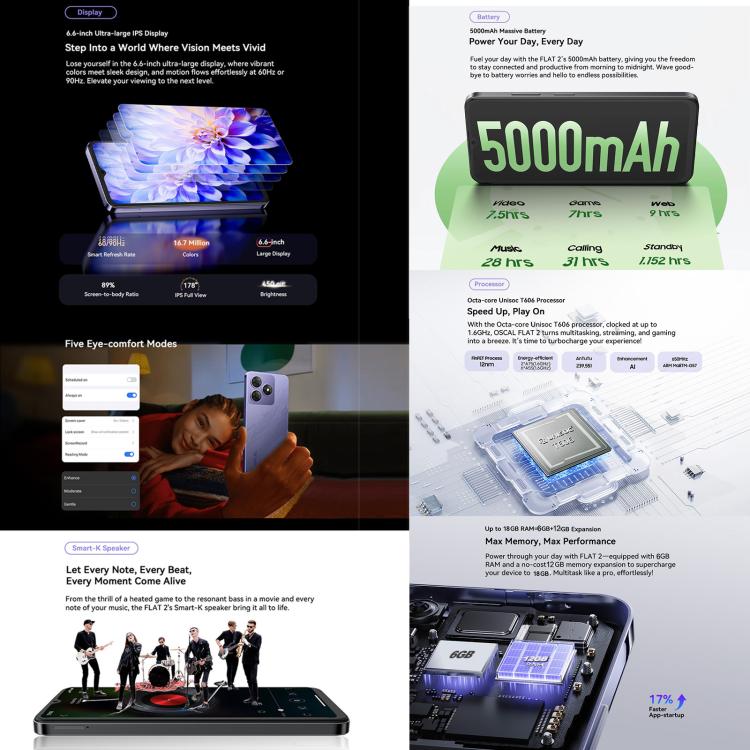 Blackview Oscal FLAT 2 - 4GB+128GB, 6.6 Inch Android 14, Unisoc T606 Octa Core, 4G Network, 6GB+256GB Upgrade