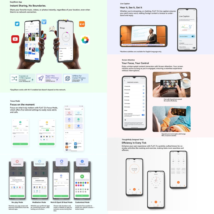 Blackview Oscal FLAT 2 Smartphone - 6.6-inch 90Hz Display Front View with Face Recognition Blackview Oscal FLAT 2 Back View - 13MP ISOCELL 4H7 Rear Camera & Sleek Design Blackview Oscal FLAT 2 Side Details - Type-C Port, 3.5mm Earphone Jack & Power Button Blackview Oscal FLAT 2 13MP Rear Camera Close-Up - ISOCELL 4H7 Sensor Detail Blackview Oscal FLAT 2 Screen Display - 1612x720 Resolution & 90Hz Refresh Rate Blackview Oscal FLAT 2 SIM/TF Card Slots - Dual Nano SIM + 2TB Expansion Blackview Oscal FLAT 2 Package Accessories - Type-C Cable, EU Charger & Tempered Film