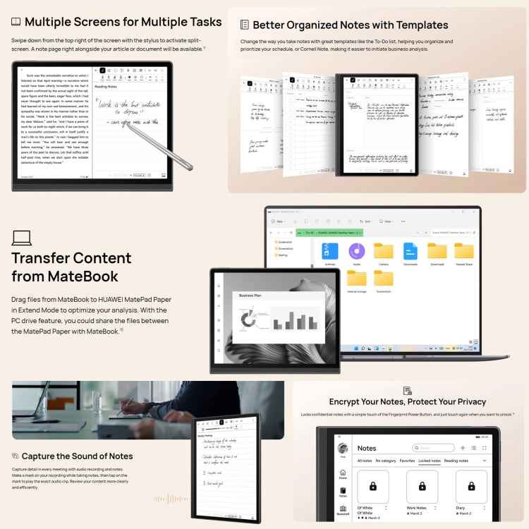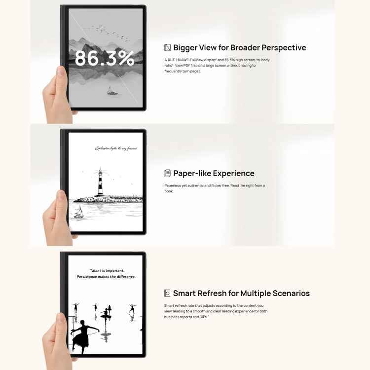 3. 10.3 inch E-ink display. Support fingerprint unlocking; equipped with reading light, support 32-level brightness adjustment, imitation paper book design