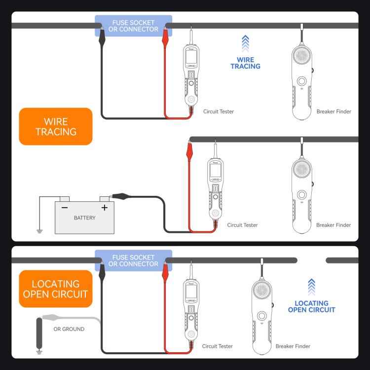 2. No additional tools are required to determine the continuity of cables/wires and diagnose circuit breaker points, suitable for most 12-24V cars